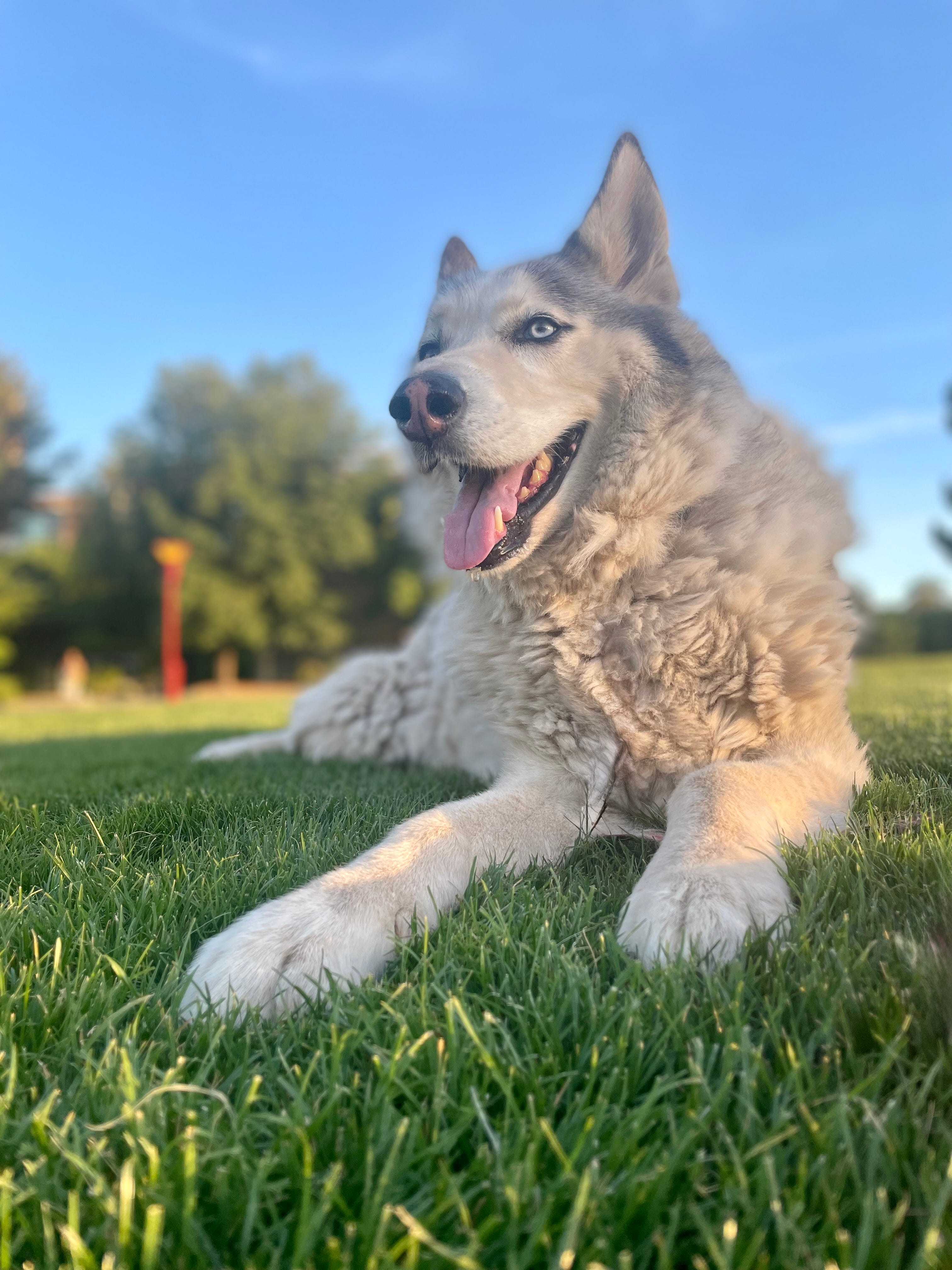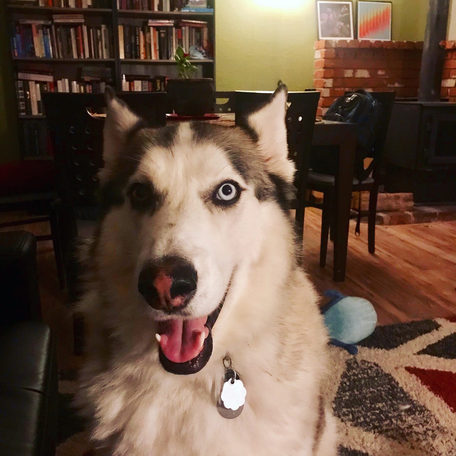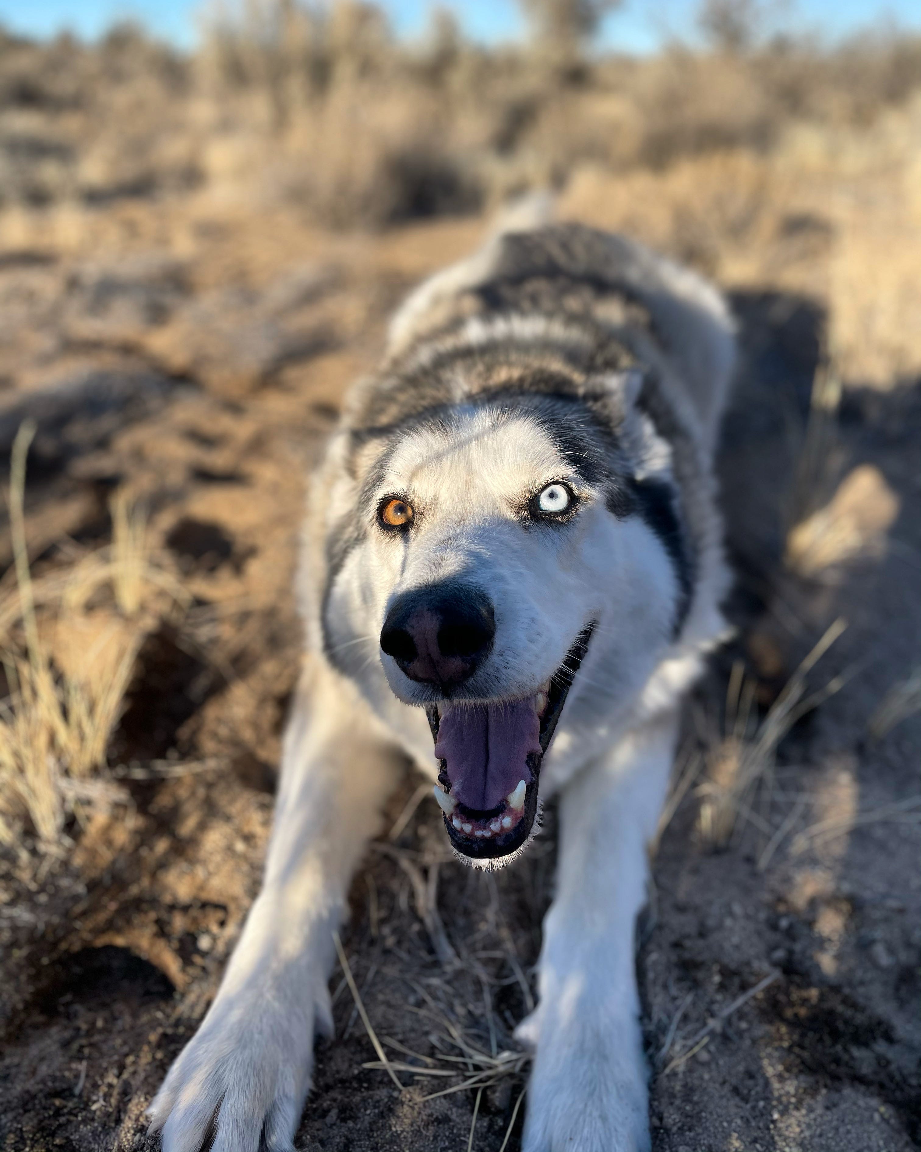 The lady handling him didn't stand a chance--Maxwell was 120 pounds and half wolf after all. He bolted from her and knocked me to the ground licking my face, then burst into full blown husky run, ears back, smile all the way across his face as he lapped up and down the hallway and every human in the office burst into laughter.