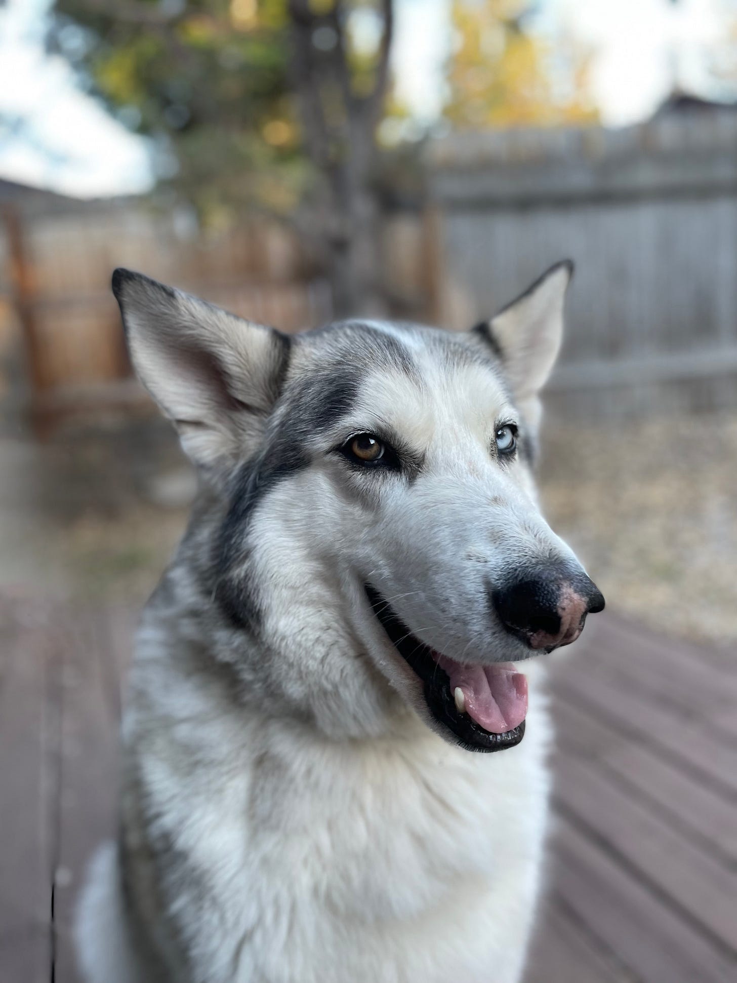 These two sides represented the way he lived, one eye here on the Earth full of joy for being alive and reveling in all the small wonders of being a dog. The other eye, the blue eye, always in some distant place guiding him on every night of a full moon as he sat outside, paws crossed in front of him, staring at the heavens.