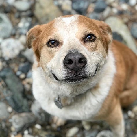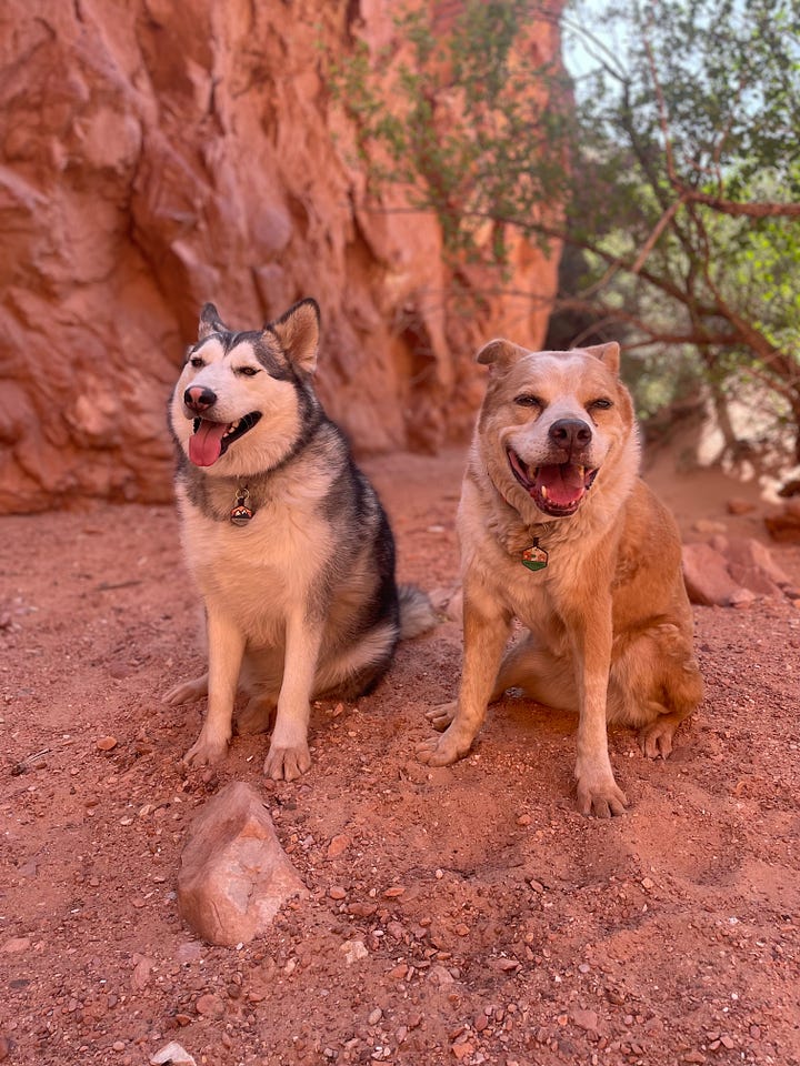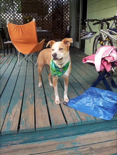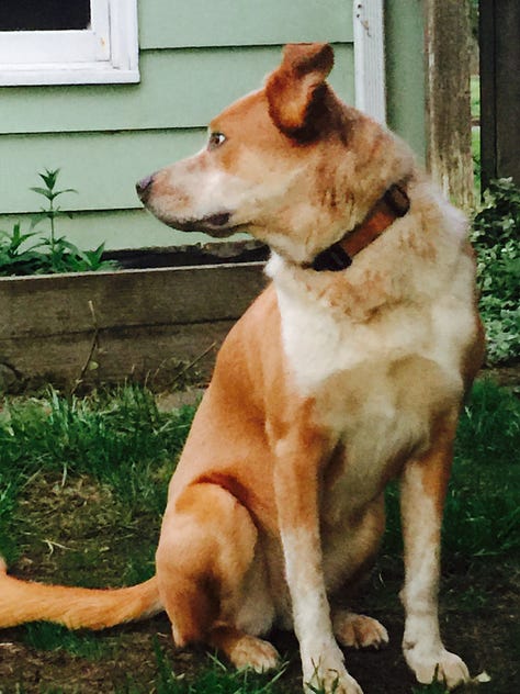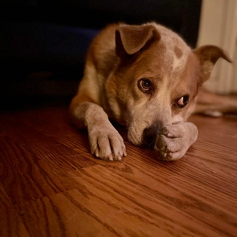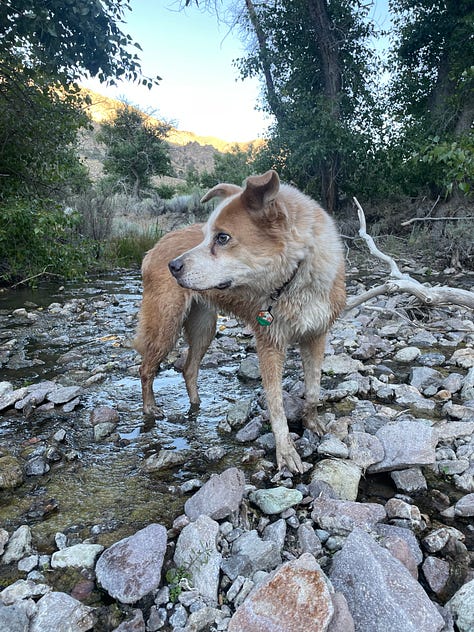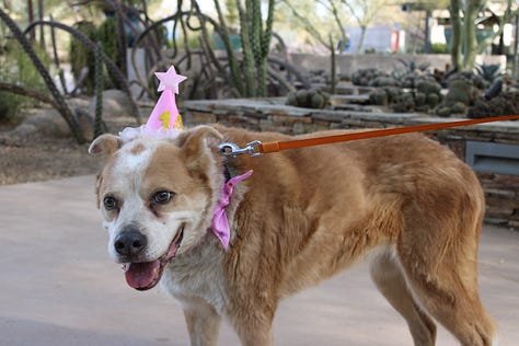 Daphne left this world at 10:30 a.m MST., May 5, 2025. What I wouldn’t realize until later was this: I had adopted her exactly 14 years before, to the hour. I remember the day because it is my ex-husband’s birthday and on that morning in 2011, I’d arrived at the shelter at opening, met her, and was in the car driving home home by 9:30 a.m PST., exactly 14 years before I held her paw, thanked her, and told her I loved her over and over as she slipped out of her body.