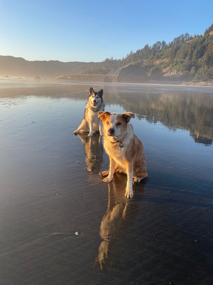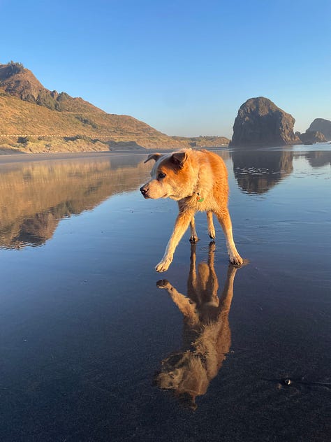 Daphne mostly slept, her energy had noticeably faded since our last visit. That night, I built a fire, the dogs settled in the truck, and I stood by the fire thinking about all the time that was passing. The looming sense that Daphne’s end was nearing hovered over me, and in the moonlight, I felt the subtle flicker of Maxwell’s presence. I didn’t know it then, but I suspect Maxwell had returned to help Daphne find her way home.