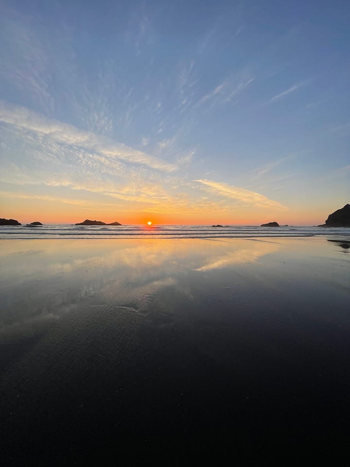 I drive through this other part of America, perhaps the most desolate—Nevada, Area 51, old friends in the desert, then through the high desert of Oregon where I have never felt more myself. I spend 12 days driving up, camping in Central Oregon, driving to the southern coast and finding a dispersed campsite that is splendid beyond belief.