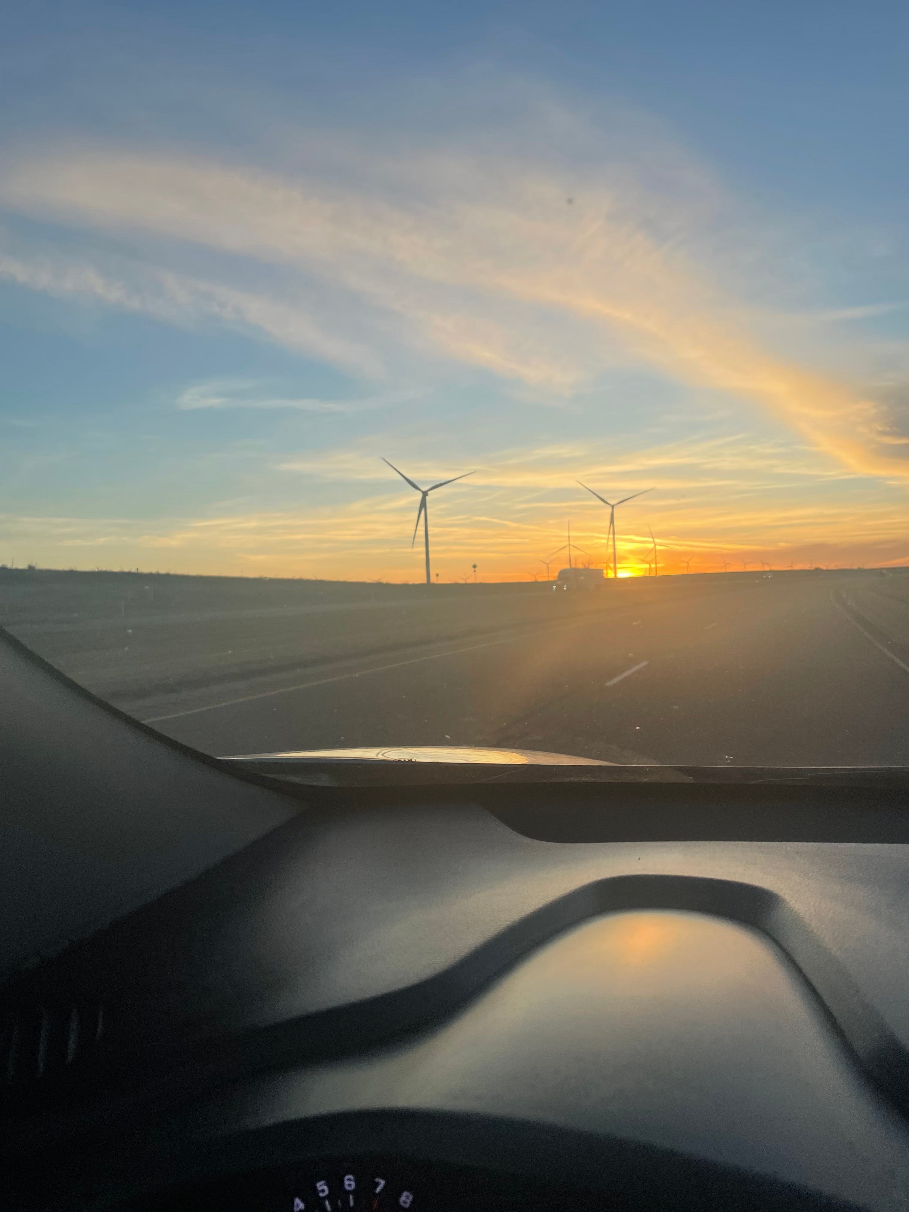 How far have I gone? This furious route from my family home in Kentucky to my adult home in Arizona during a January snowstorm has been an adventure. I’ve been outrunning a blizzard for two days now. A little bad weather driving is one thing; 2000 miles of it in a car that’s bad on ice is entirely different. I wake up in a beat- down hotel in a bad part of Little Rock on a bed whose sheets I didn’t turn down, and whose hallways smell of cannabis, piss, and curry. I do not linger but get on the road as soon as I can. This will be a day of Casinos, truck stop towns, and endless fucking windmills.